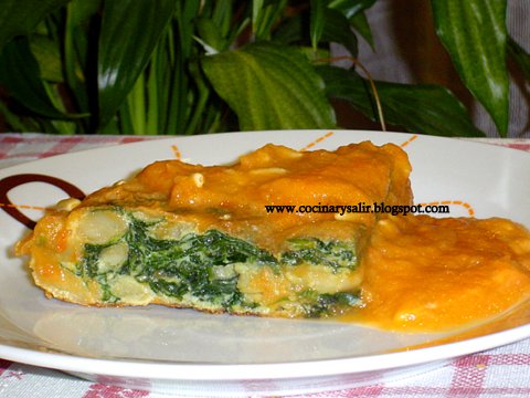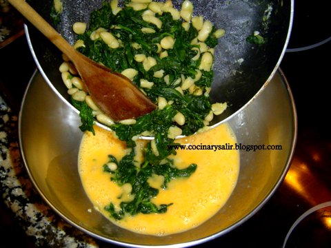 TORTILLA  DE ESPINACAS  Y  JUDÍAS  BLANCAS  EN  SALSA  o