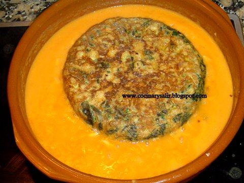 Tortilla de Espinacas y Alubias en Salsa o Truita d'espinacs i Fessols amb Suc.