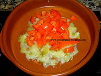 2.  cortar el tomate a tacos e introducir en la cazuela.