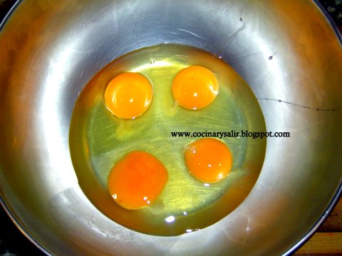 3.  en un Bol cascar los 4 Huevos y emulsionar ( batir enérgicamente ) Sal