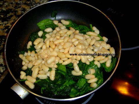 4.  introducir en el bol la mezcla de espinacas con alubias y mezclar bien.