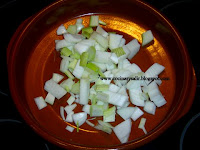 1.  en una Cazuela de Barro poner 2 cucharadas de Aceite y la cebolla cortada a tacos. Pochar