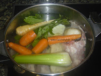 INGREDIENTES4 carcasas de pollo1 bandeja de verduras de preparado para caldoPREPARACIÓN1. lavar bien las verduras y las carcasas de pollo